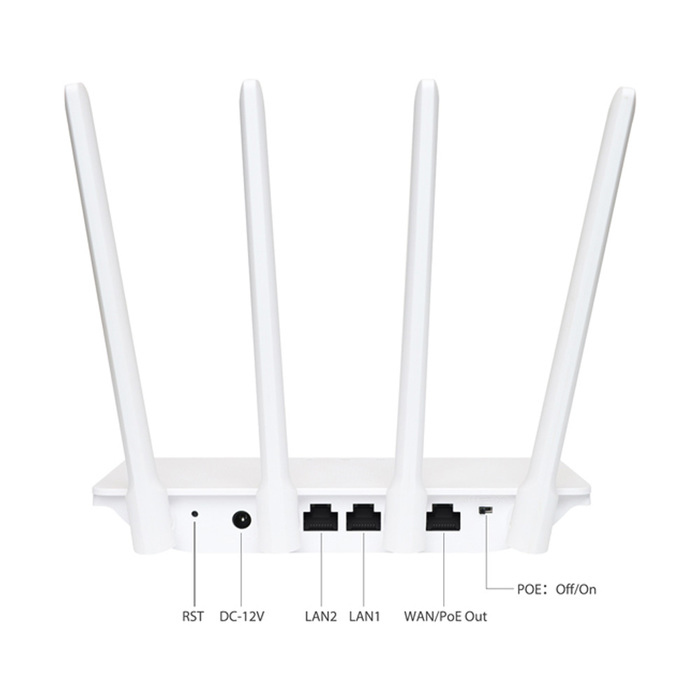 Переключение режима PoE для WAN порта предусмотрено с помощью переключателя на корпусе устройства. Для обеспечения локальных подключений роутер оснащен двумя гигабитными LAN-портами.