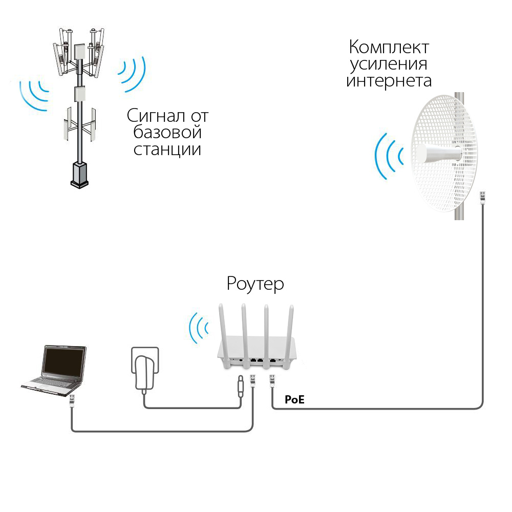 Маршрутизатор полностью совместим с комплектами усиления LANS WCAP-W, LANS WCAP-WS и позволяет обеспечить их питанием через PoE разъем.