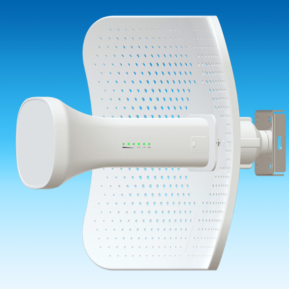 Устройство интегрировано с направленной параболической антенной MIMO 2×2 с коэффициентом усиления 19 дБ. Это решение позволяет: